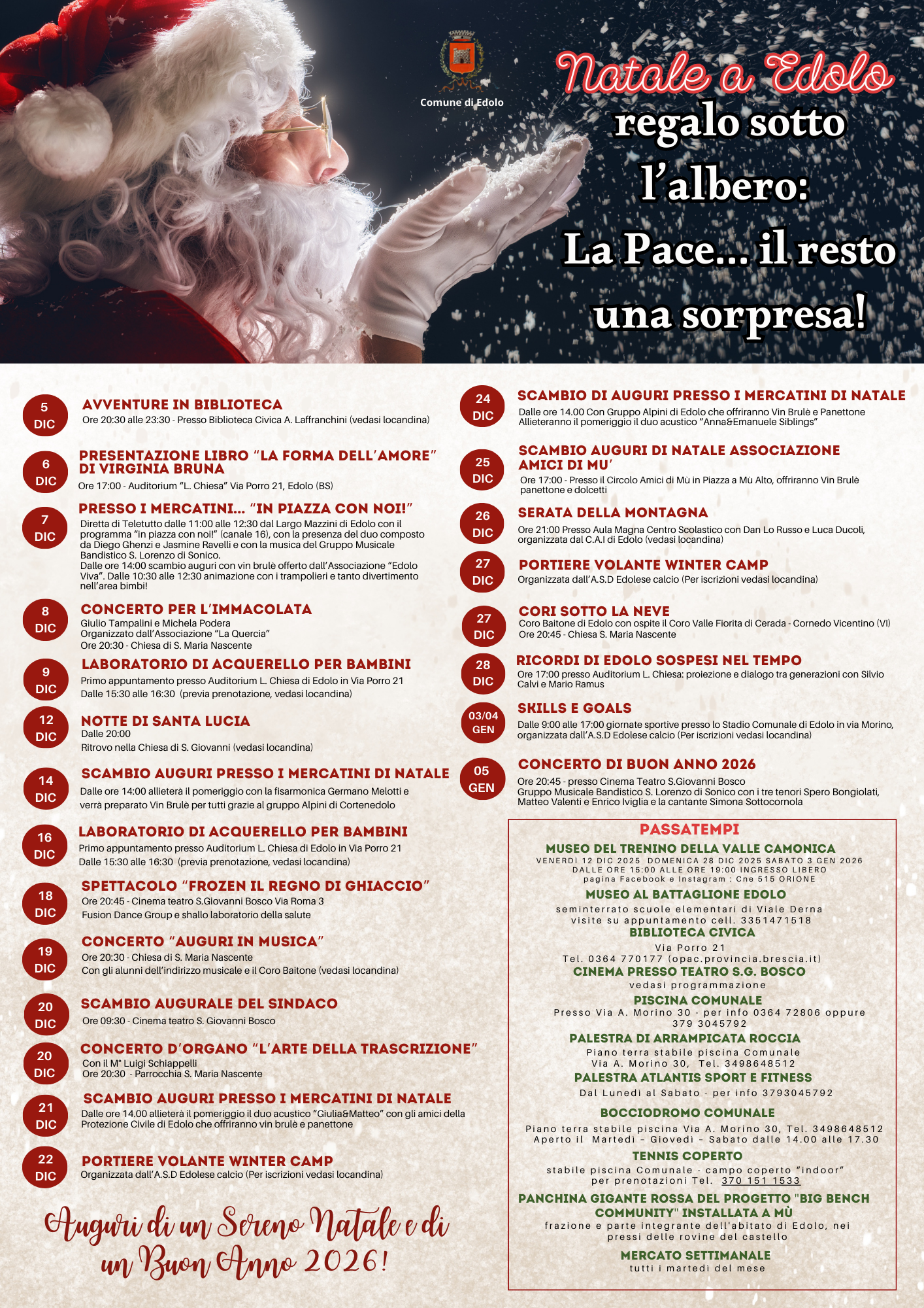 NATALE A EDOLO regalo sotto l'albero: La Pace... il resto una sorpresa!